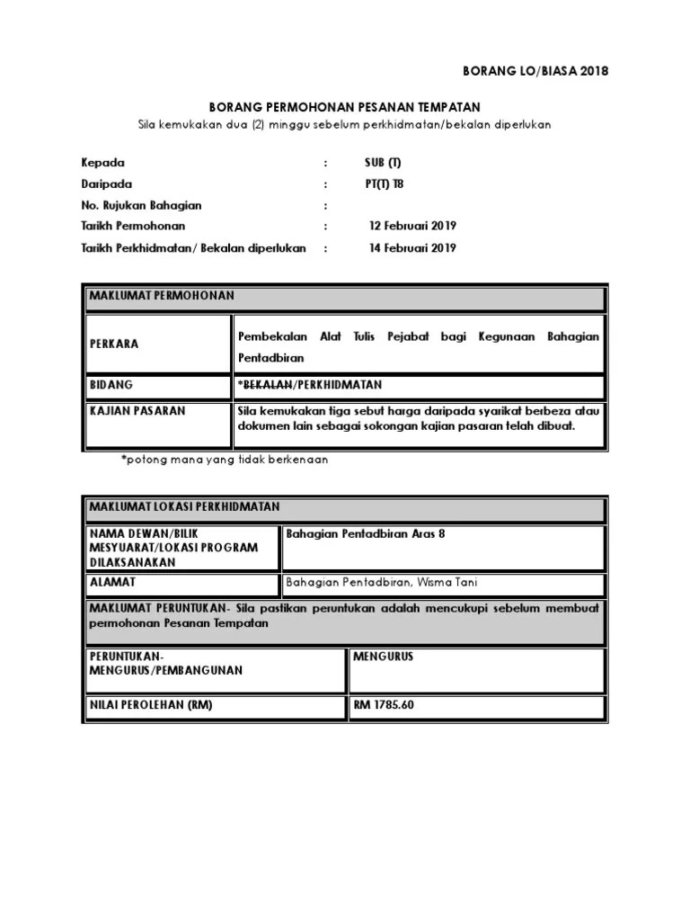 Contoh Borang Pesanan Tempatan Kerajaan / Pengurusan Perolehan Kerajaan Tatacara Kaedah